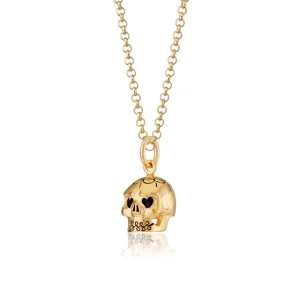 NECKLACESMetal: Recycled 925 Sterling Silver (Chain), Recycled Brass (Charm) Plating: 18 Carat Gold & Black Ink Dimensions: Skull Charm 11x9x11mm Chain: Belcher Chain, Standard Length 40-45cm (16"-18") Bring gothic edge to your style with this skull pendant necklace! A sleek, modern take on dark glamour, this skull necklace features black heart-shaped eyes and a ‘Dia de los Muertos’ Mexican design. All Scream Pretty necklaces come beautifully presented in our signature branded packaging.£70.00