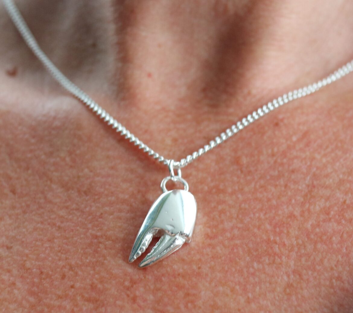 Sterling Silver Large , Crab Claw Pendant Necklace