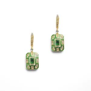 Step back into an era of glamorous sophistication with these exquisite Art Deco drop earrings. Crafted with a polished gold-plated finish, their geometric design is beautifully accented with vibrant green enamel. At their heart, a striking emerald-cut crystal gleams, surrounded by a pavé of sparkling clear crystals that echo the era's signature brilliance. Each earring offers a 40mm length, ensuring a captivating swing and a touch of timeless elegance for any occasion.