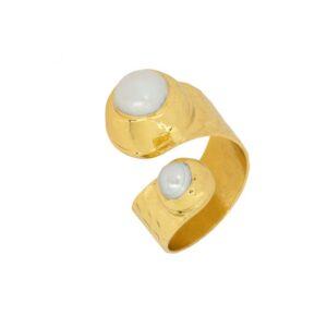RINGSAqua chalcedony and turquoise two stone ring. Dive into the beauty of our Nora Ring Aqua featuring premium 22 carat gold-plated brass. Gracefully set with aqua chalcedony and turquoise, each stone showcases unique oceanic hues, perfect for adding a splash of elegance. Its adjustable design ensures a comfortable fit for all.£41.00
