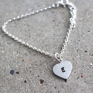 Handcrafted in sterling silver, this delicate bracelet features beautifully personalized heart charm .Each hand-stamped with an initial of your choice.