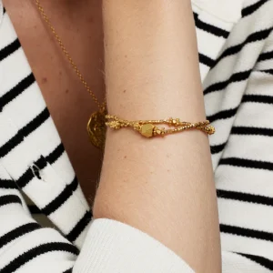 It is made from sterling silver with an 18ct gold vermeil finish and measures 1.5cm in width and 16.5cm in length, with a 2cm extender chain.