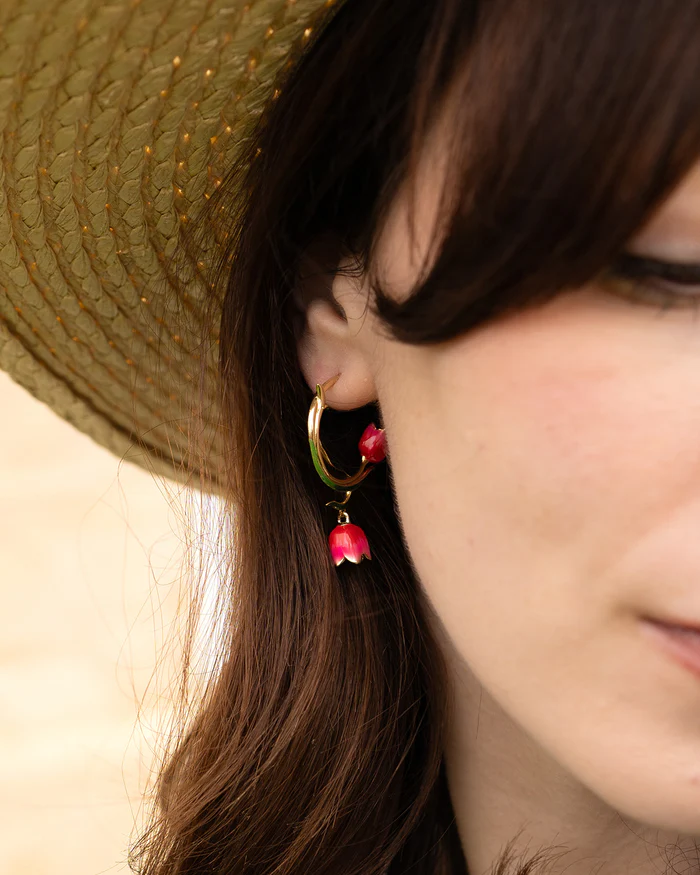 A fresh floral twist on a classic silhouette, these Tulip Hoop Earrings are inspired by spring flowers and garden colour. Combining playful charm with everyday wearability, they’re designed to brighten your day all season long.