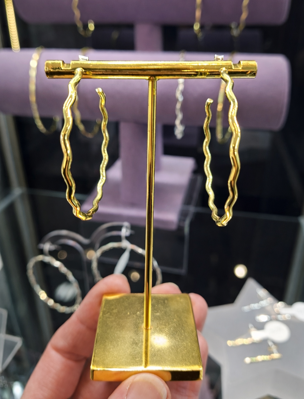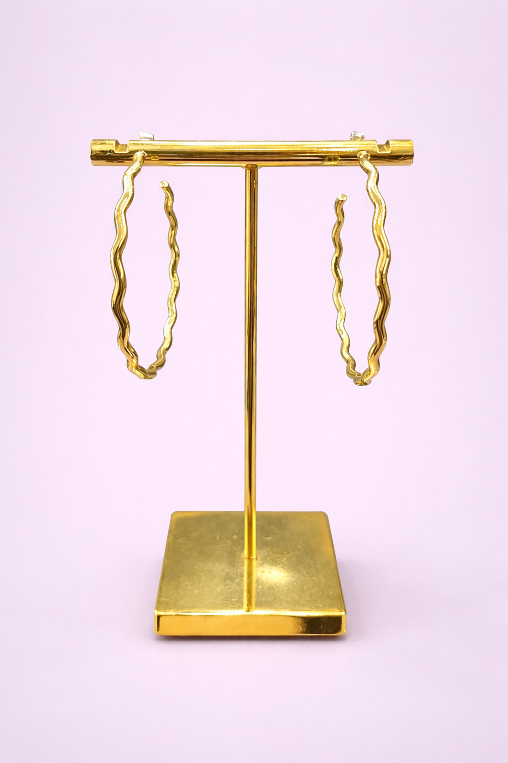 Scallop inspired brass hoops with a wavy finish that catches the light beautifully. Made with sterling silver posts for comfortable everyday wear. Bold yet lightweight, designed to be worn effortlessly.