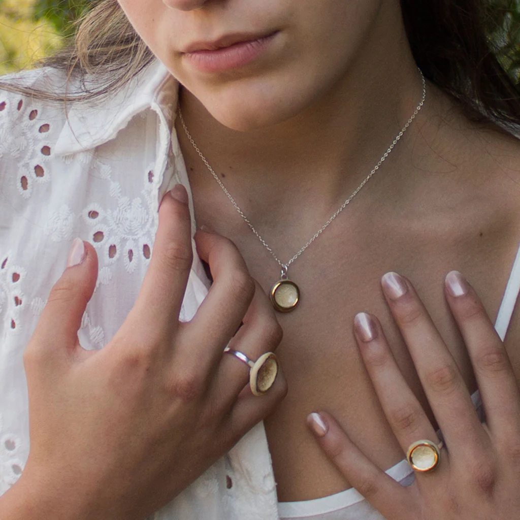 Handle with care. Ceramic is a sturdy material when being worn, but when taken out please ensure the jewellery avoids impact or sharp objects as this may damage the ceramic. Ideally store in a dry place or in a box.