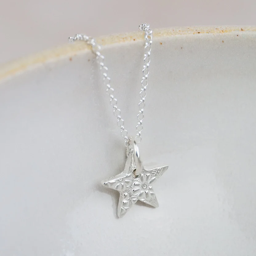 Handmade sterling silver small textured star pendant.