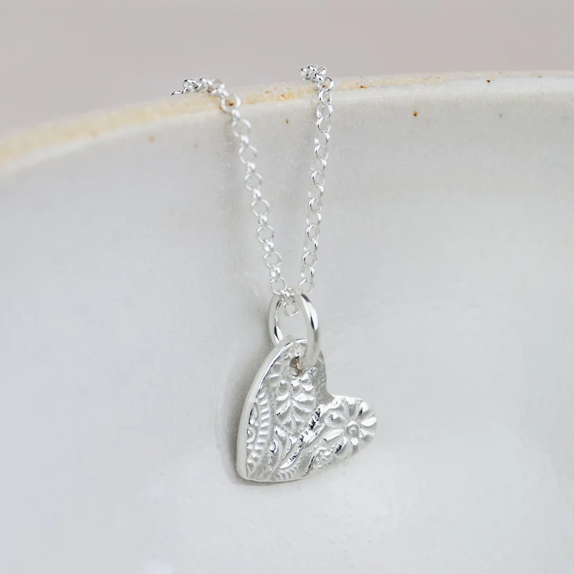 Handmade sterling silver small textured heart pendant.