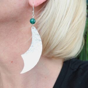 The result is a light, sculptural silhouette that floats on the lobe, with a gently hammered surface that catches the light from every angle.