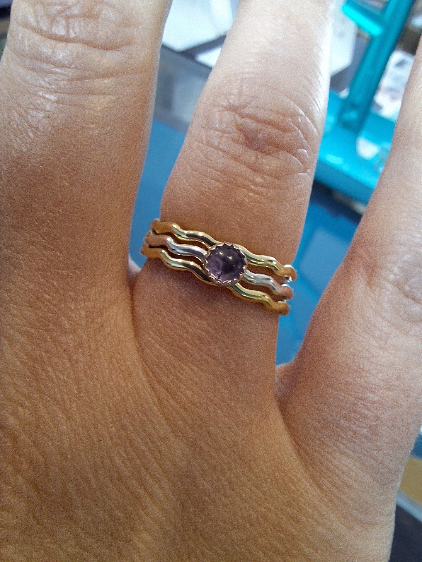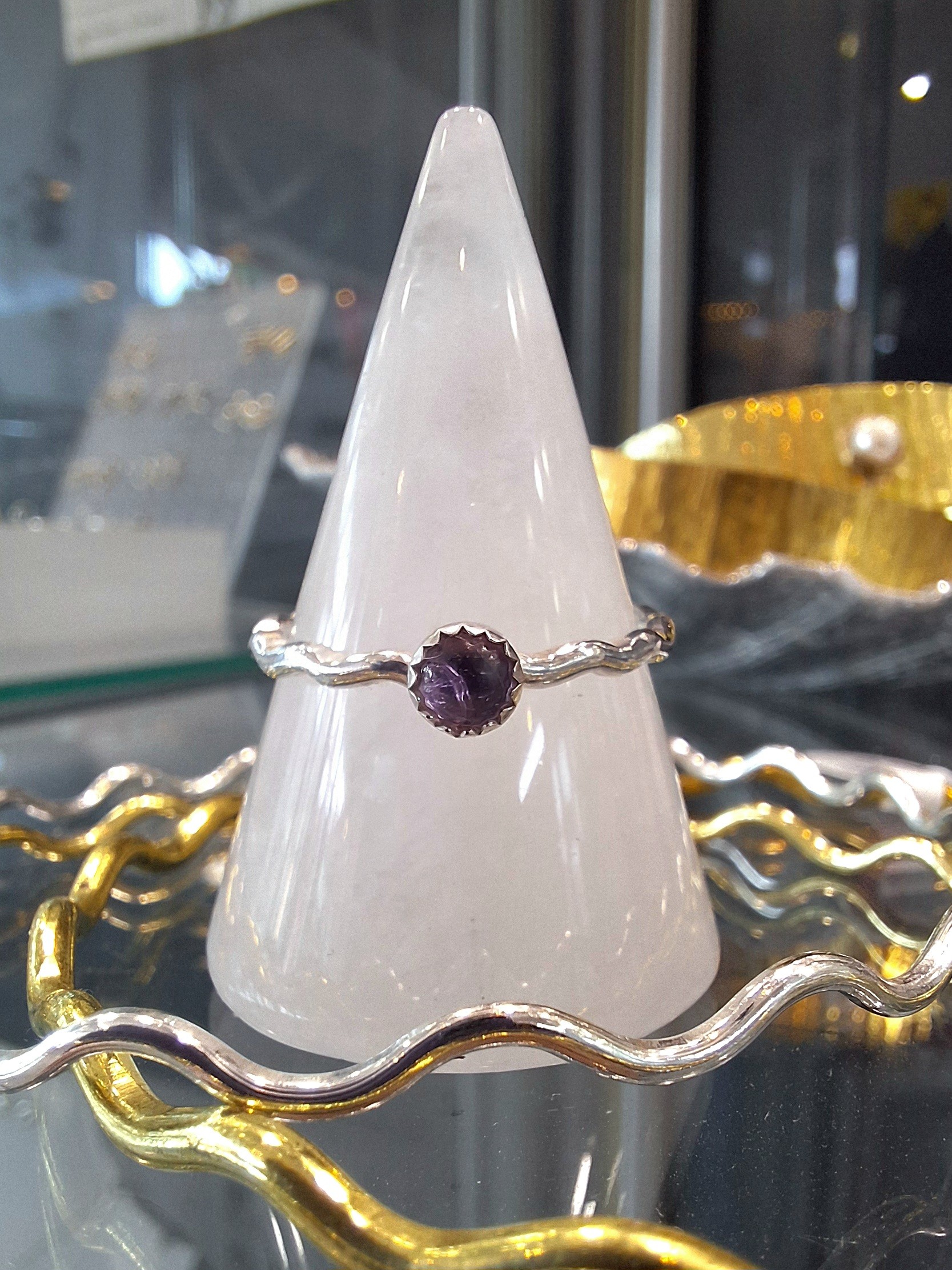 Sterling Silver & Amethyst Scallop Stacking Ring